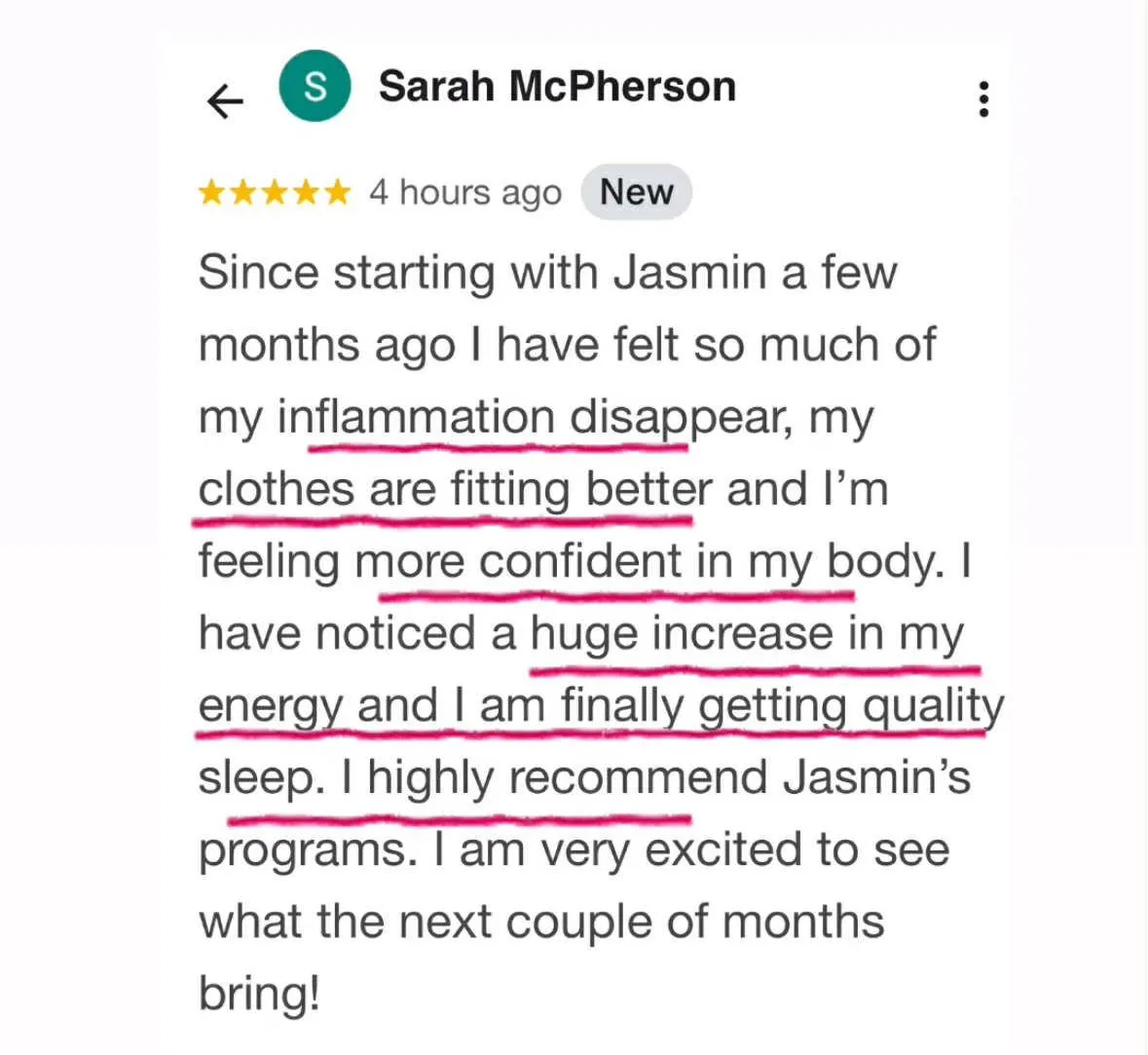 Rememeber, this is NOT about counting calories, macros or dieting - we get to the root causes of your symptoms and create a customized hormone optimizing protocol that is unique to YOU!