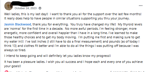“At my last doctor’s visit, I was on the edge of being diagnosed with Hashimoto’s. Now my numbers have drastically improved - I’m on the low side of normal! No more awful periods, my pants fit a lot better, I've lost 13 inches and I feel stronger, more energetic, and more confident than I have in years"(Dom)